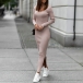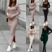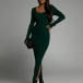Fashion Solid Color Square Neck Long Sleeve Slit Bodycon Knitted Dress