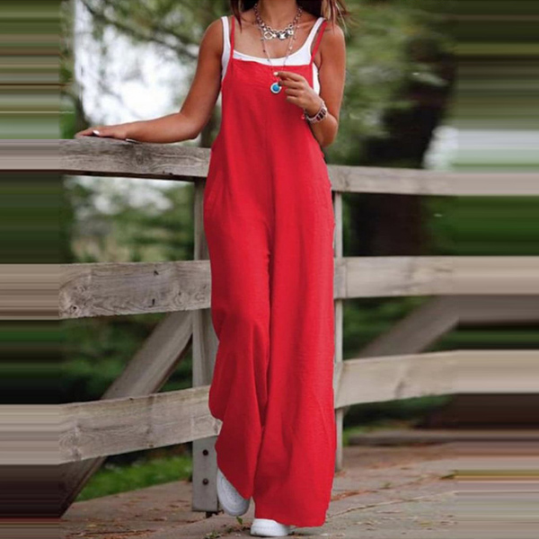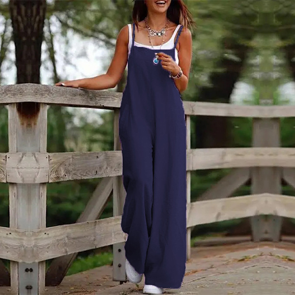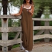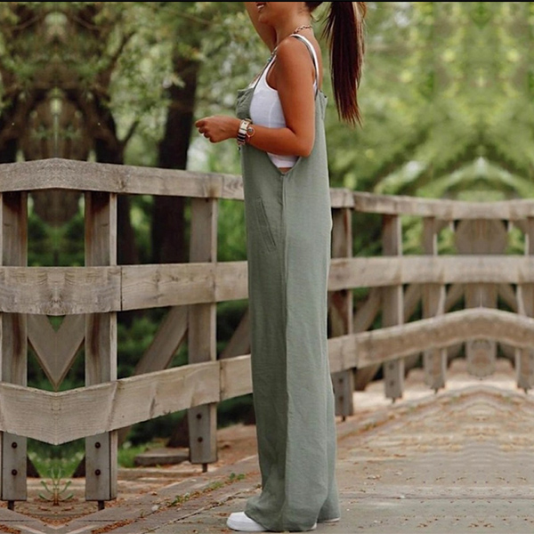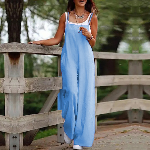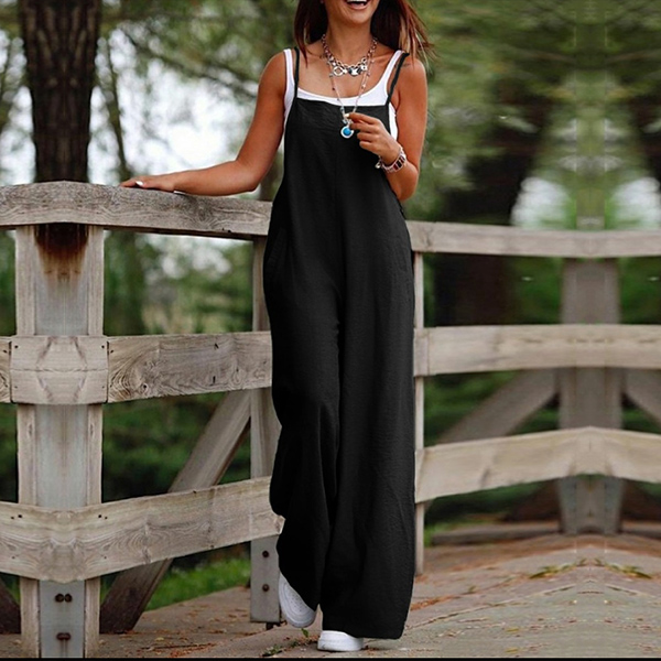 Fashion Solid Color Square Neck Loose Jumpsuit