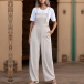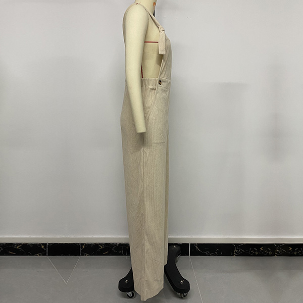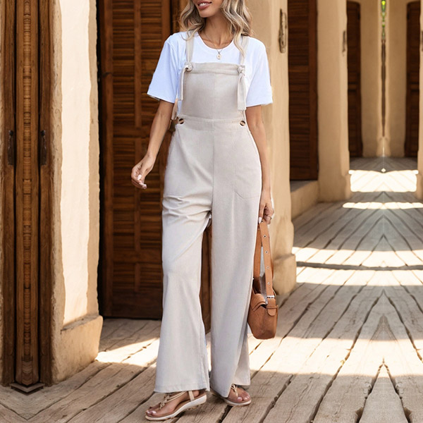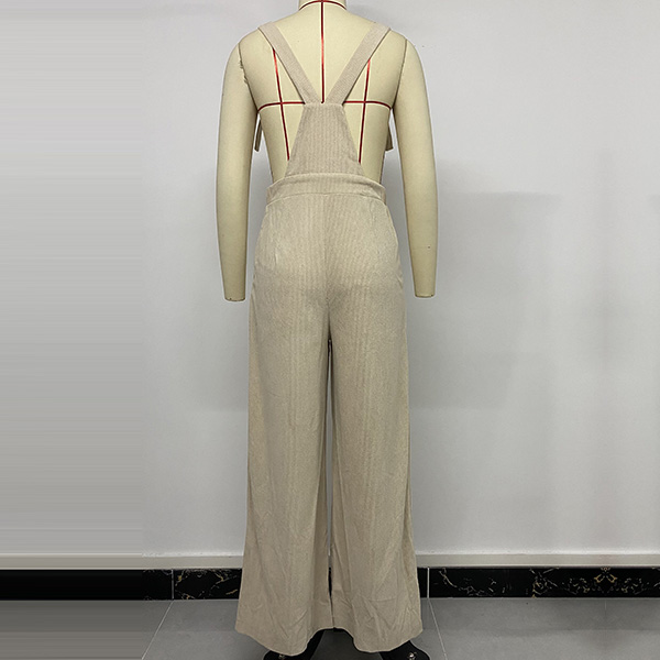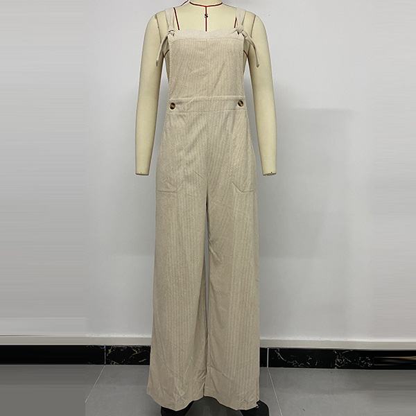 Fashion Solid Color Square Neck Self-tie Shoulder Strap Straight-cut Jumpsuit