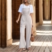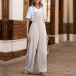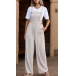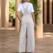 This sleek, contemporary jumpsuit feature a square neckline, self-tie shoulder strap and straight-cut silhouette creates a modern, structured silhouette that's both sophisticated and on-trend.