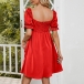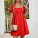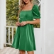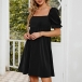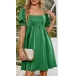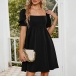 Fashion Solid Color Square Neck Short Sleeve Mini Dress