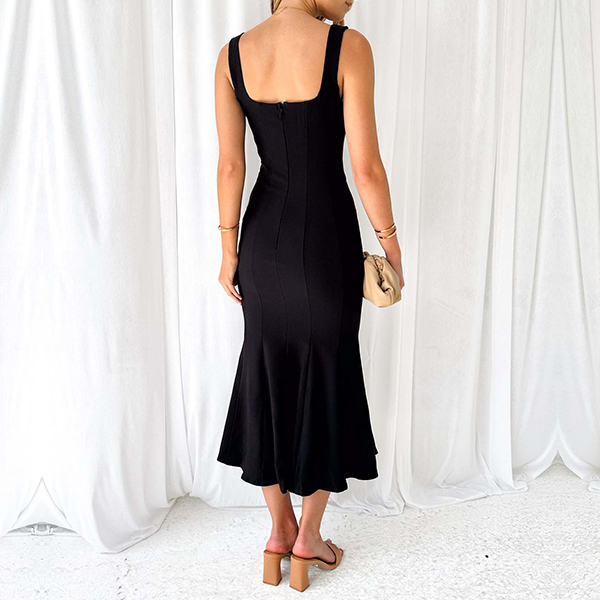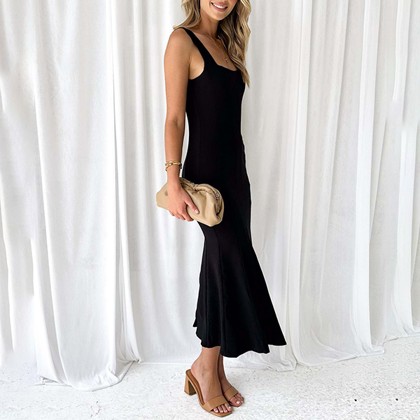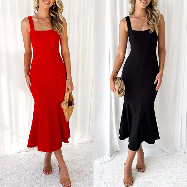 Fashion Solid Color Square Neck Sleeveless Fishtail Dress
