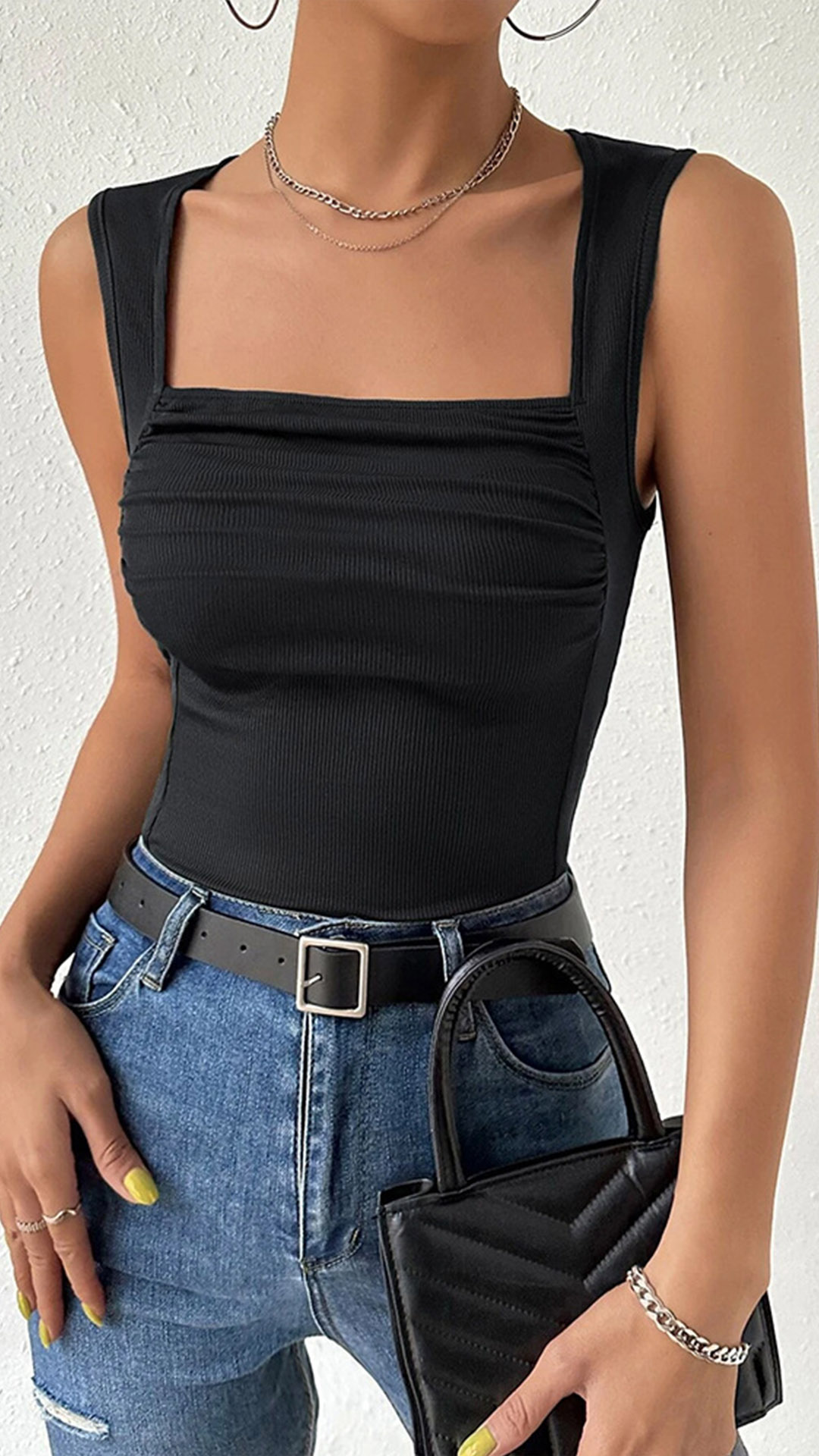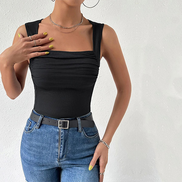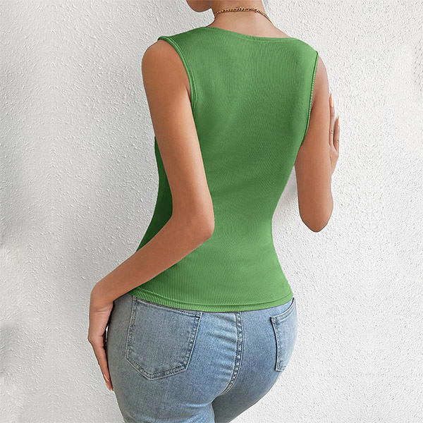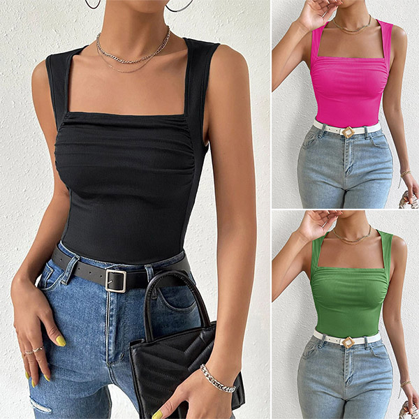 Fashion Solid Color Square Neck Sleeveless Shirt