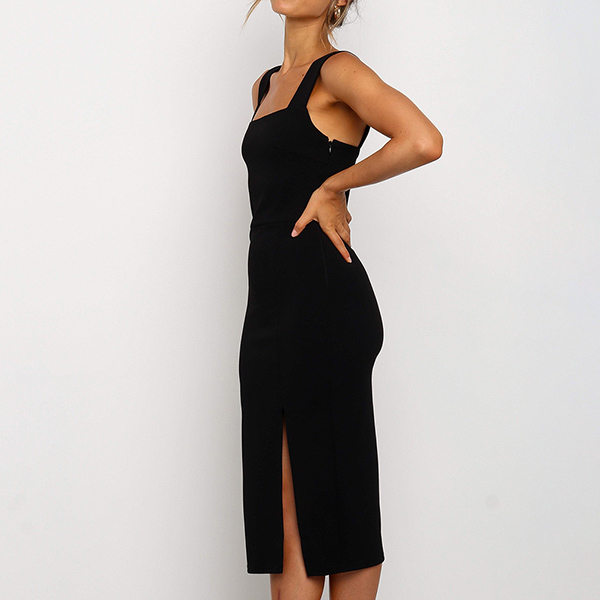Fashion Solid Color Square Neck Slit Bodycon Tank Dress