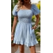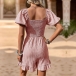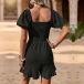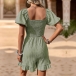 Fashion Solid Color Square Neck Smocked Bodice Short Sleeve Pleated Romper