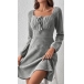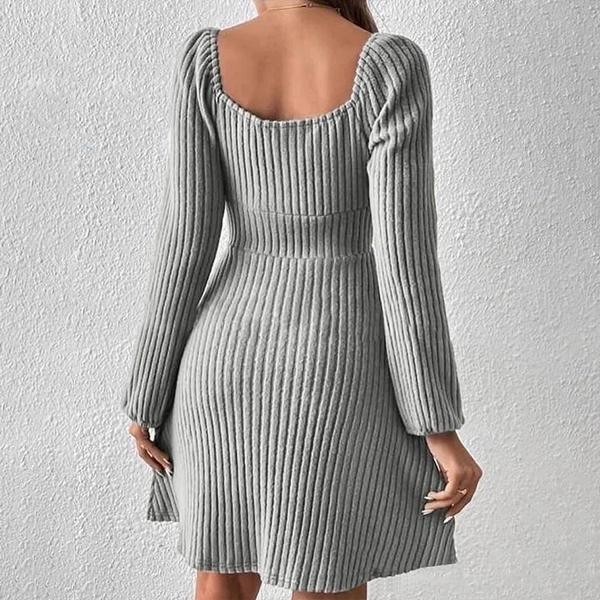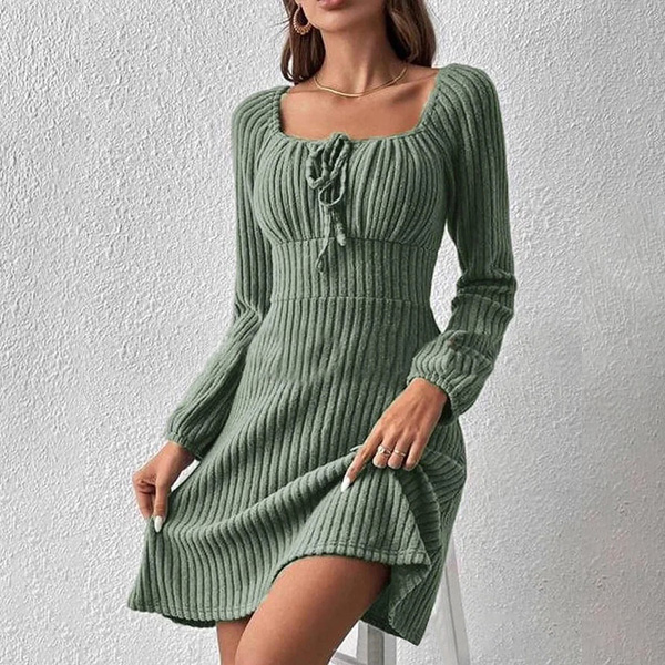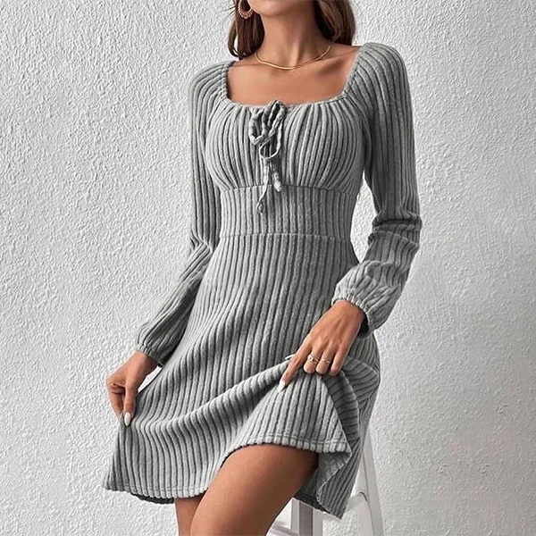 Fashion Solid Color Square Neck Vertical Stripe Long Sleeve Mini Dress