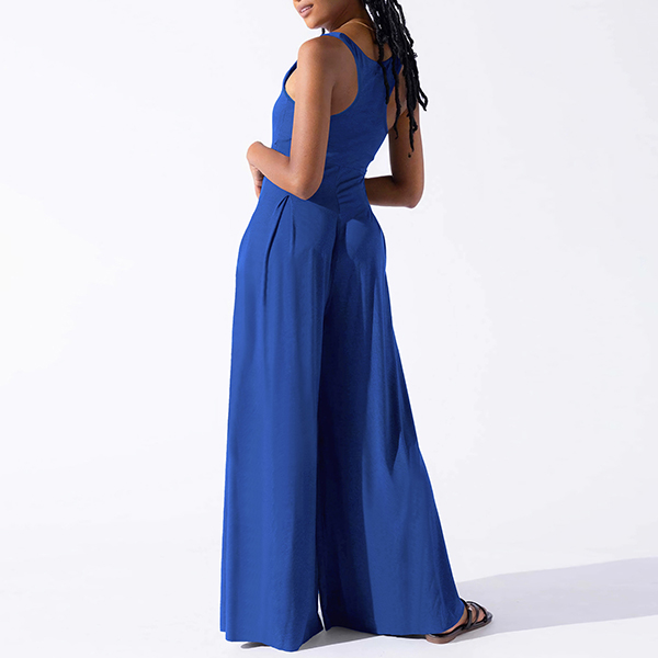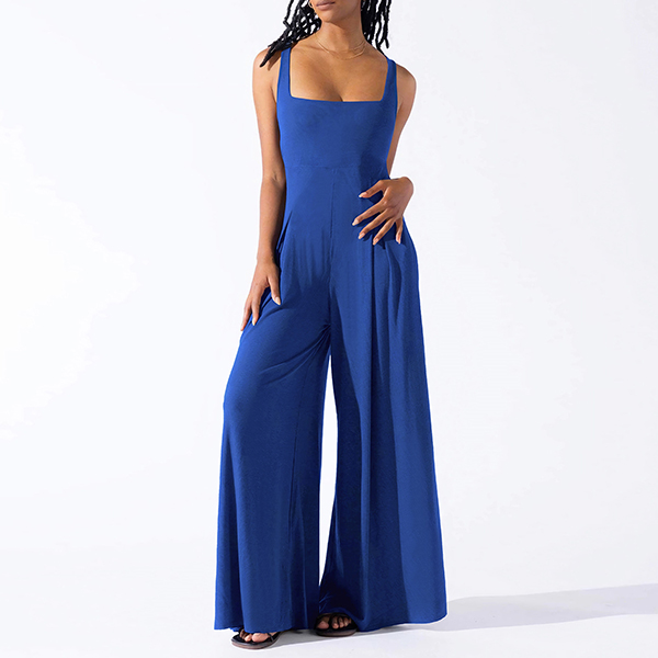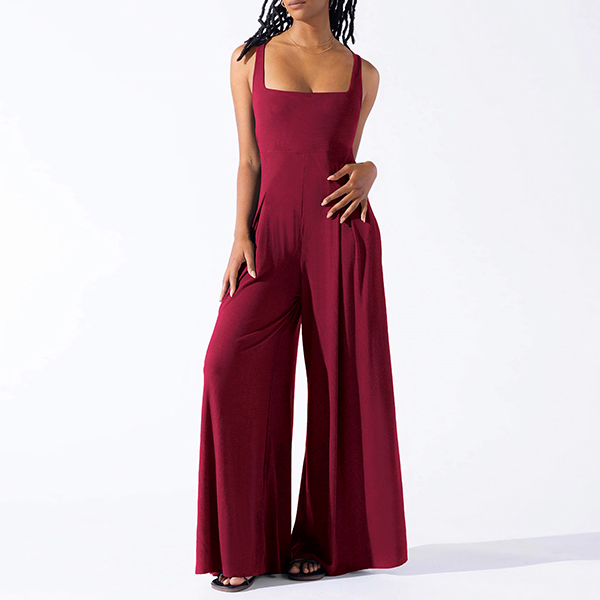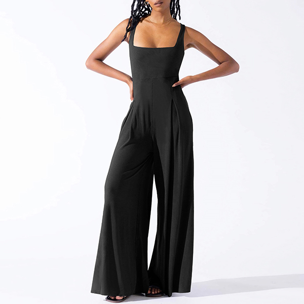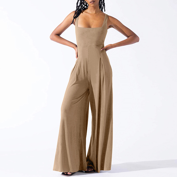 Fashion Solid Color Square Neck Wide-leg Jumpsuit