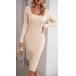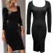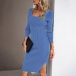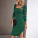 Fashion Solid Color Squared Neck Long Sleeve Slit Ribbed Bodycon Dress