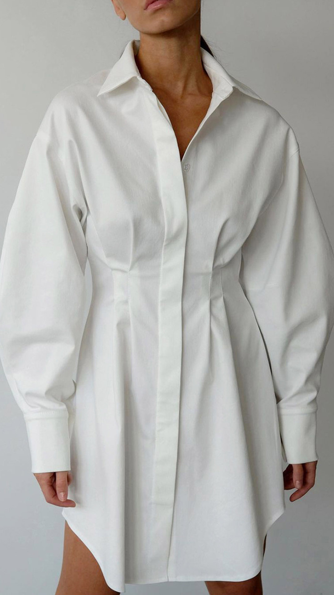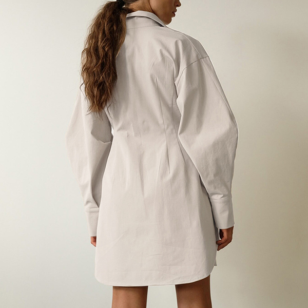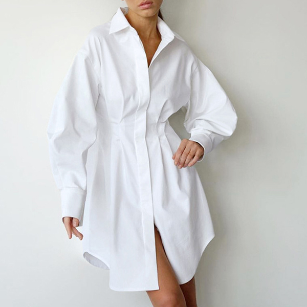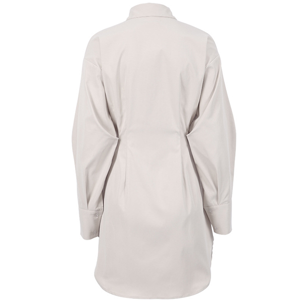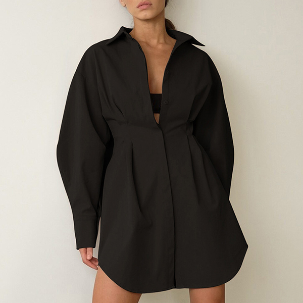 Fashion Solid Color Stand Collar Cinch Waist Long Sleeve Shirt Dress