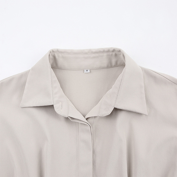 This shirt dress features a solid color design, a stand collar, cinched waist, and long sleeves. Pair it with a sandals or flat shoes for a stylish and sophisticated look.