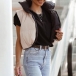 Fashion Solid Color Stand Collar Drawstring Hem Vest