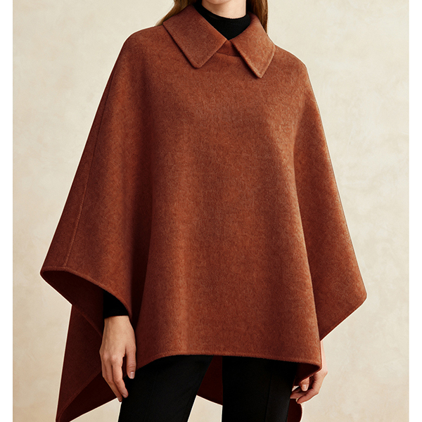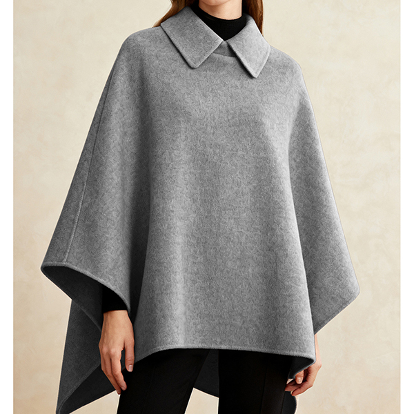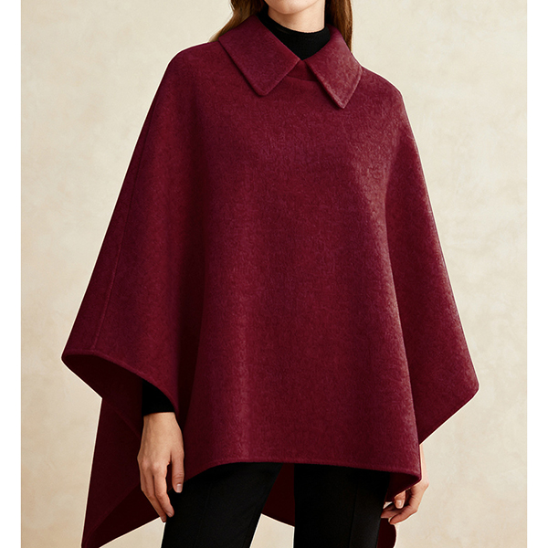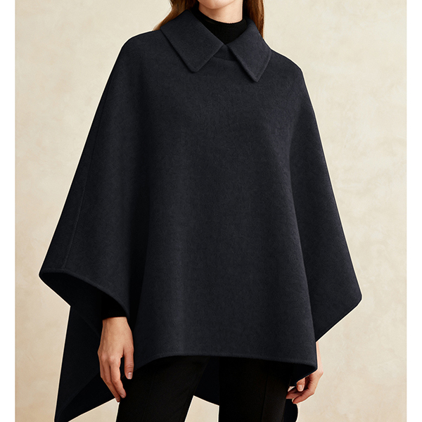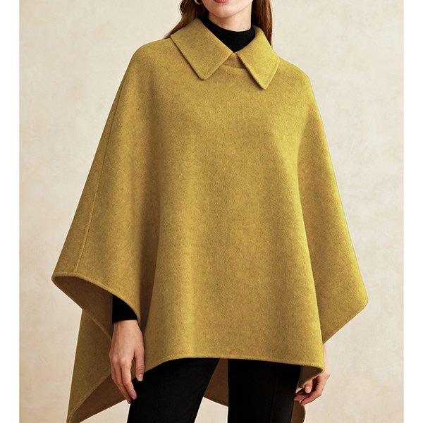 This sophisticated cape features classic stand collar and versatile solid color for contemporary elegant outerwear sophistication. Multi-colors available.