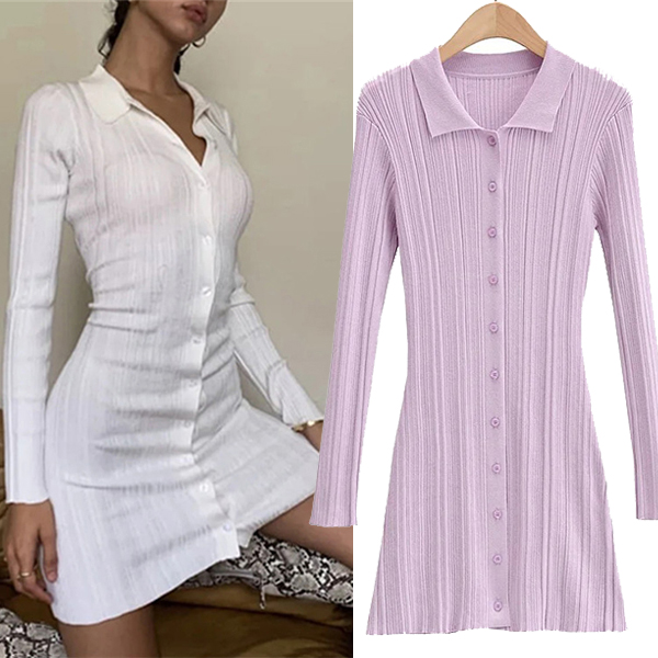 Make a chic and sophisticated statement with this ribbed dress. The stand collar adds a touch of elegance and refinement to the dress, while the front button detailing offers a classic and stylish touch. The elastic ribbed fabric adds texture and dimension to the dress, creating a flattering and comfortable fit. Multi-colors avabile.