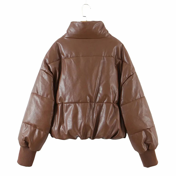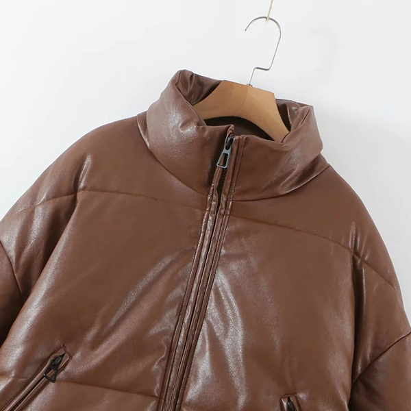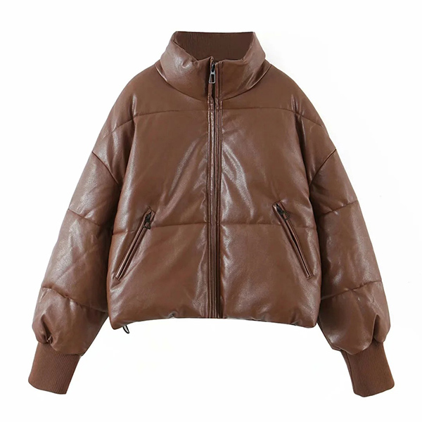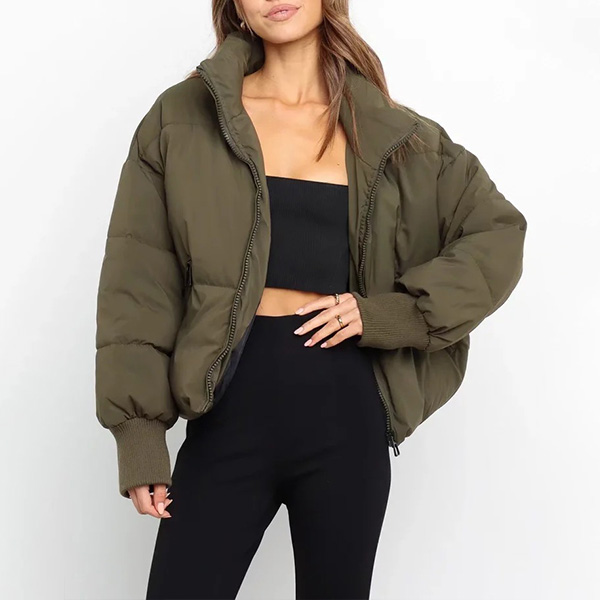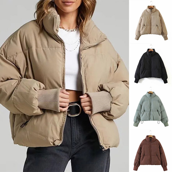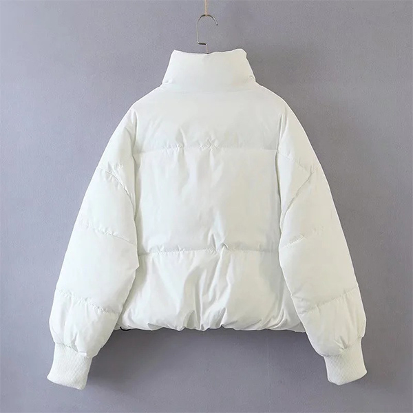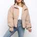 Fashion Solid Color Stand Collar Front-zipper Warm Padded Coat