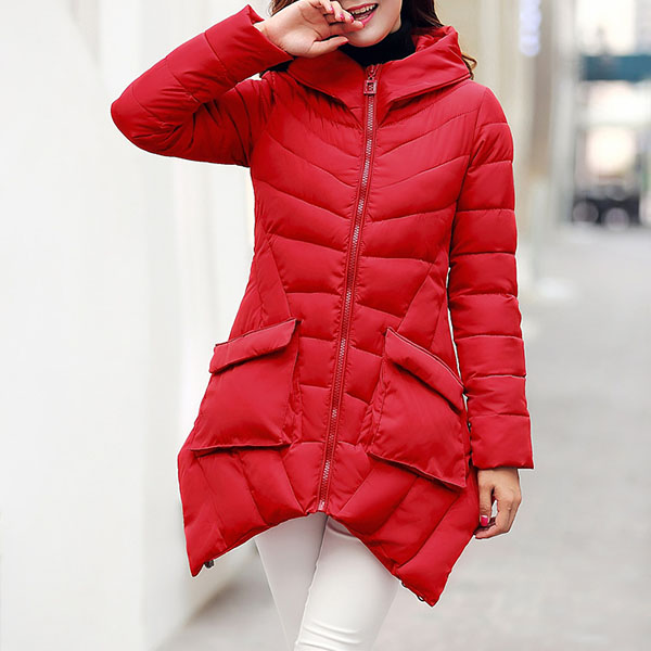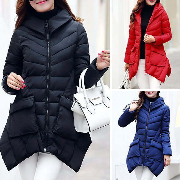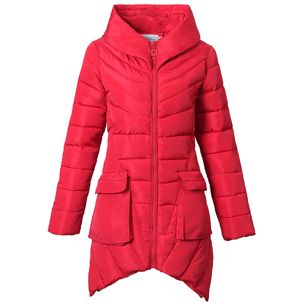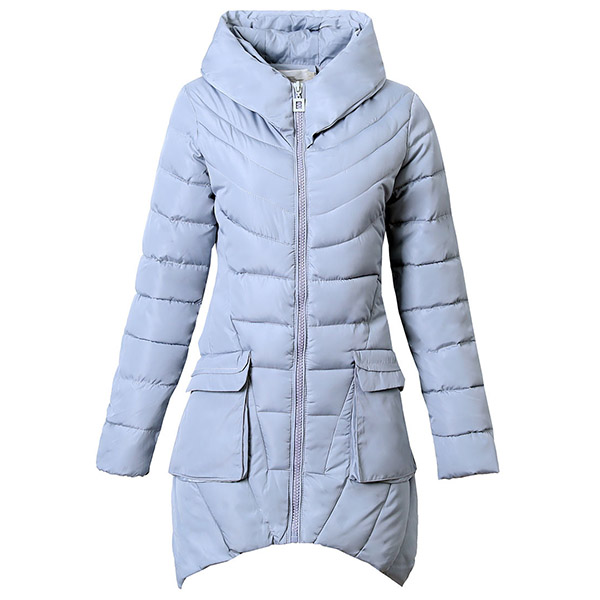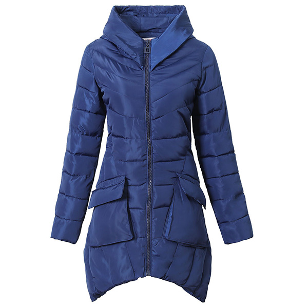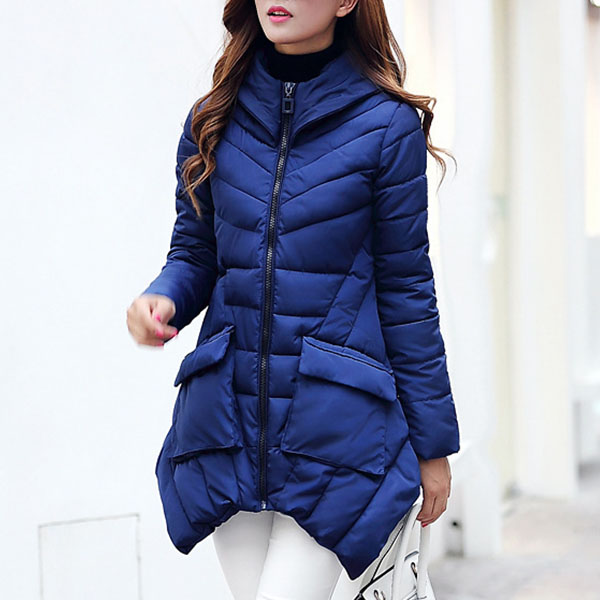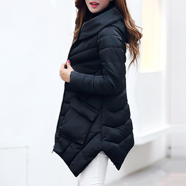 When the cold season hits,you can simply slip into this padded coat to keep yourself warm. It is finished with long sleeve,stand collar,hooded silhouette and an irregular hem,chic yet stylish. The bid pockets design can keeps your hands warm. It is worth to be your new darling in these chilly days.