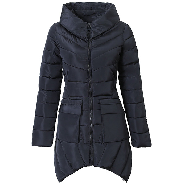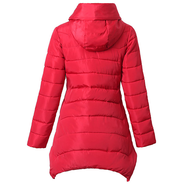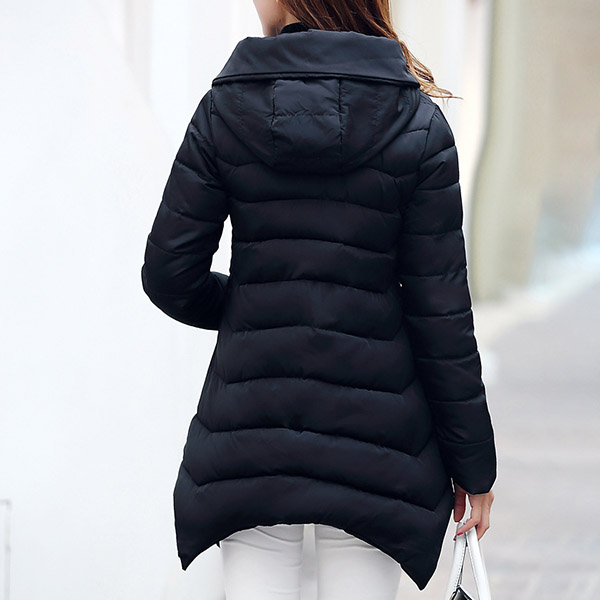 Fashion Solid Color Stand Collar Irregular Hem Hooded Padded Coat