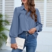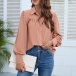 Fashion Solid Color Stand Collar Long Sleeve Blouse