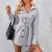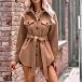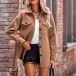 Fashion Solid Color Stand Collar Long Sleeve Buttoned Self-tie Duffle Jacket