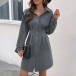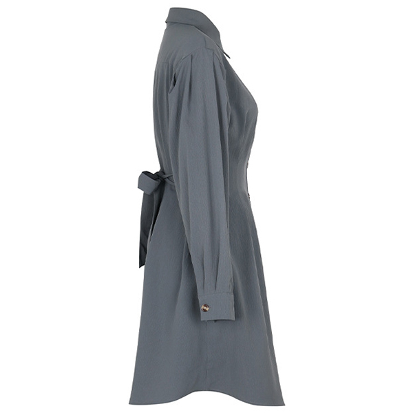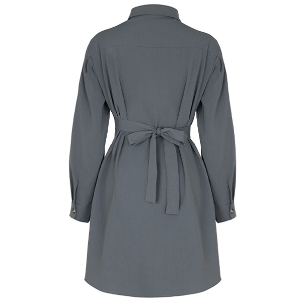 Robe chemise élégante avec col montant et manches longues, boutonnée et avec une ceinture nouée, disponible en couleur unie.