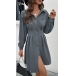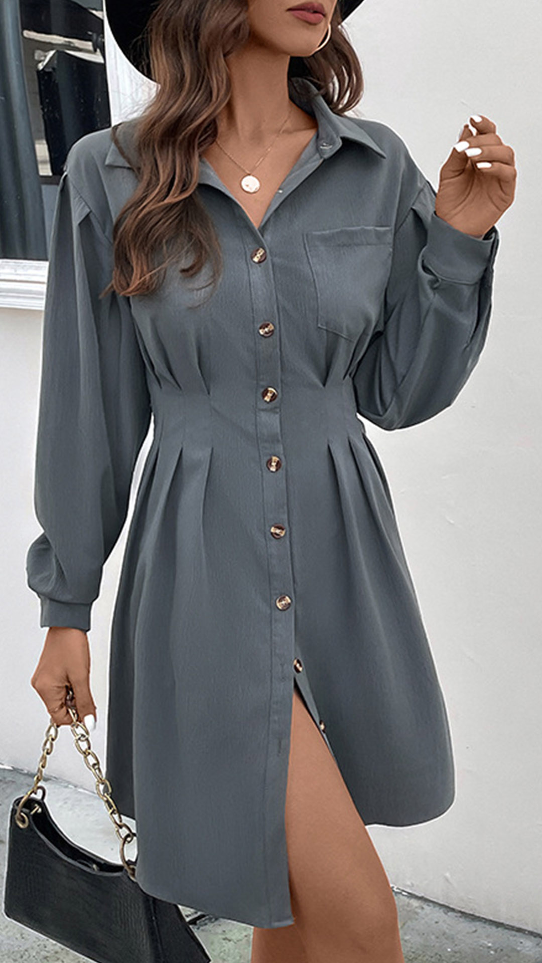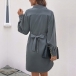 Dotée d'un col montant et de manches longues, cette robe dégage un look sophistiqué et raffiné. Le devant boutonné ajoute une touche d'élégance, tandis que la ceinture à nouer à la taille vous permet de cintrer la taille pour une silhouette flatteuse. Tu veux essayer ?