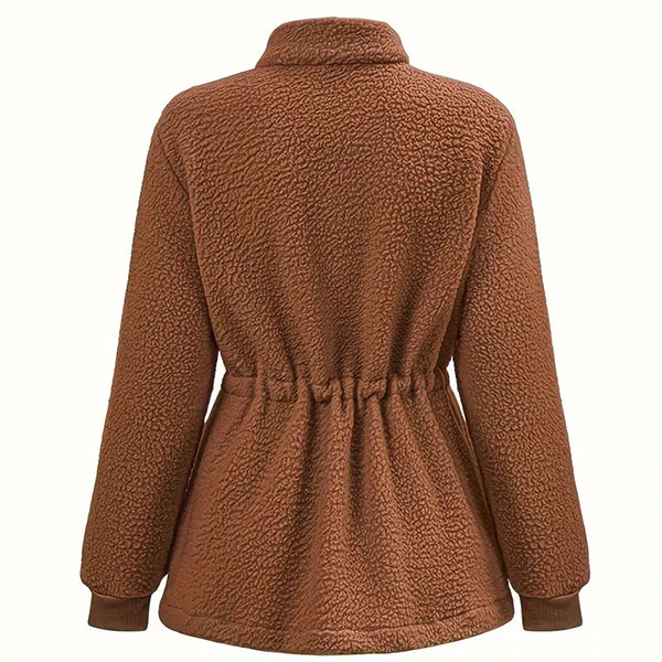 This Plush Jacket is a trendy and cozy outerwear piece that combines style and comfort for a fashionable and practical look. The solid color offers a sleek and versatile aesthetic that makes it easy to pair with a variety of outfits and accessories. The drawstring waist allows you to cinch in the jacket at the waist, creating a flattering and defined silhouette that accentuates your figure. Color:Apricot, Brown, which one do you like?