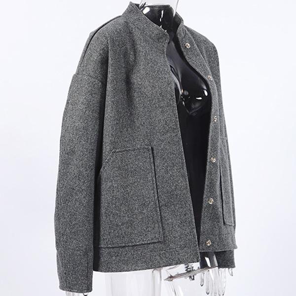 Fashion Solid Color Stand Collar Long Sleeve Duffle Jacket