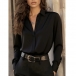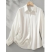 Fashion Solid Color Stand Collar Long Sleeve Fly Front Satin Blouse
