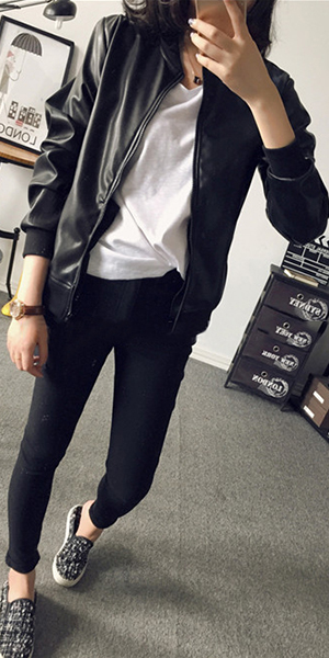 Welcome to the fashion world with this PU jacket. Boasting a super cool black hue,