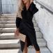 Fashion Solid Color Stand Collar Long Sleeve Irreular Hemline Self-tie Wrap Dress