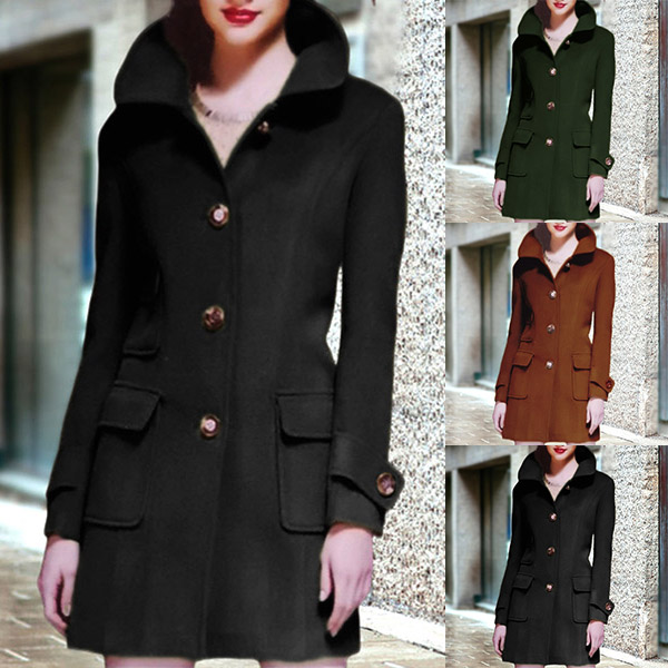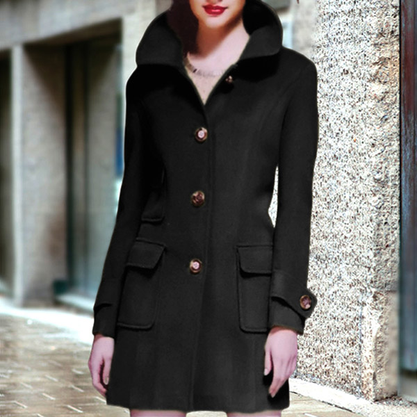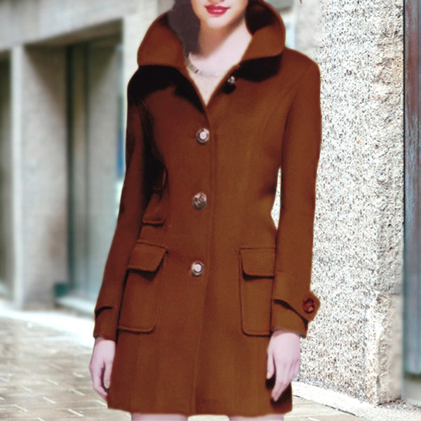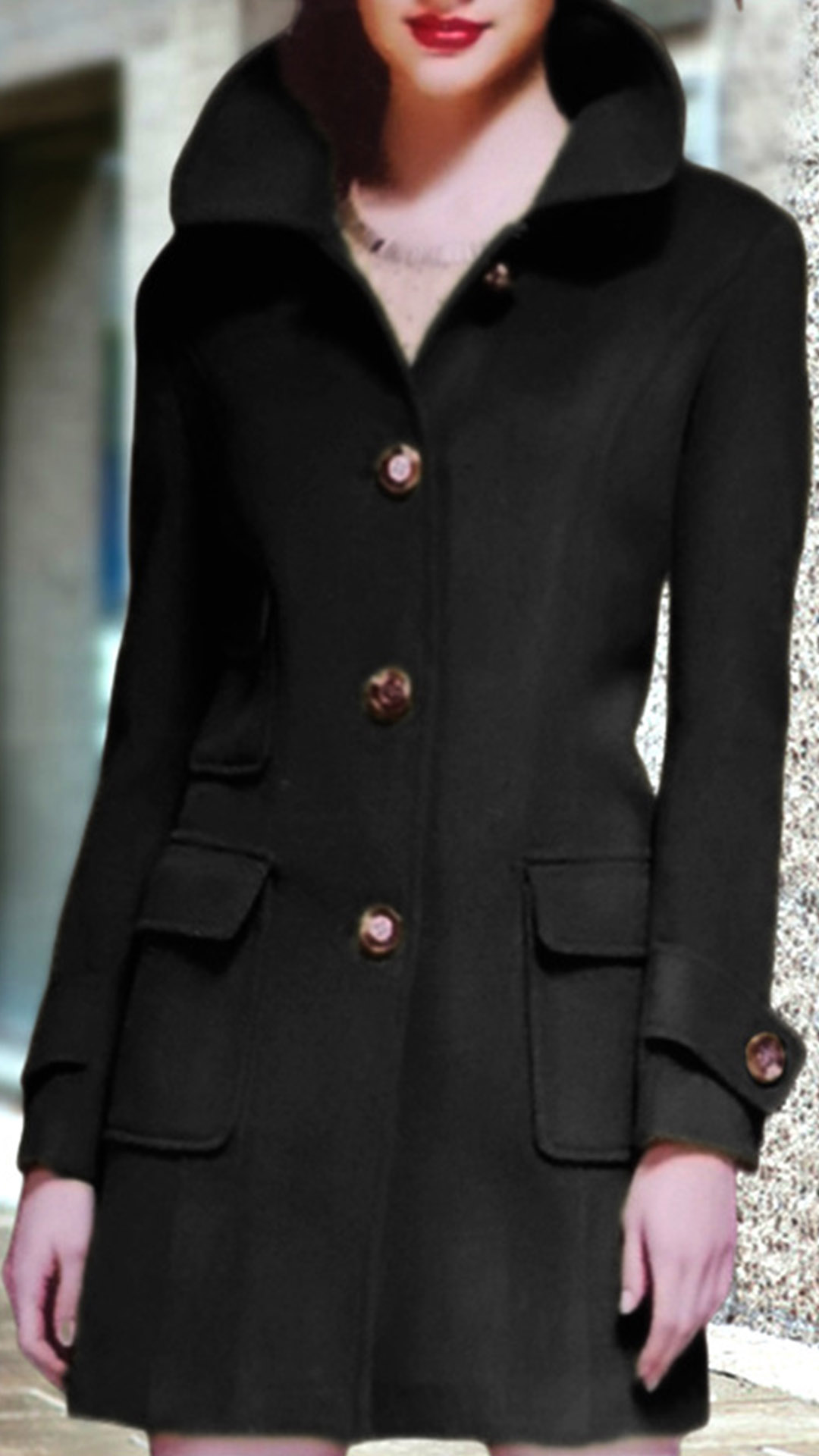Fashion Solid Color Stand Collar Long Sleeve Patch Pockets Duffle Jacket
