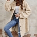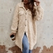 Fashion Solid Color Stand Collar Long Sleeve Plush Longline Jacket