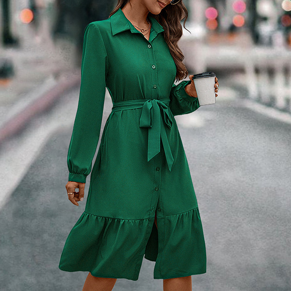 Embrace elegance and simplicity with this Shirt Dress. This dress features a sophisticated stand collar and long sleeves, and self-tie waist adds a feminine touch, allowing for a customized fit, while the buttoned front offers a classic look that never goes out of style. Hope you like it.