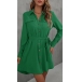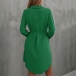 Fashion Solid Color Stand Collar Long Sleeve Self-tie Buttoned Shirt Dress