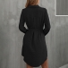 Featuring a stand collar and long sleeves, this dress exudes a modern and elegant vibe. The buttoned closure adds a classic and timeless touch to the dress. Pair it with sandals or boots for a sleek and sophisticated look.
