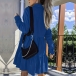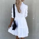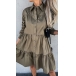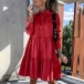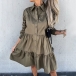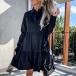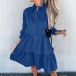 Fashion Solid Color Stand Collar Long Sleeve Tiered Dress