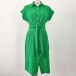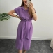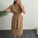 Fashion Solid Color Stand Collar Short Sleeve Buttoned Self-tie Shirt Dress