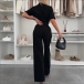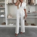Fashion Solid Color Stand Collar Short Sleeve Front Button Self-tie Straight-cut Jumpsuit