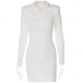 How about this dress? It features a classic stand collar, V-neckline, and long sleeves for a timeless look. The bodycon fit hugs your curves in all the right places and the solid color makes it easy to style with any accessory. Color:White,Gray,Black, which hone do you like?