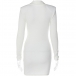 Fashion Solid Color Stand Collar V-neck Long Sleeve Bodycon Dress