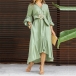 Fashion Solid Color Stand Collar V-neck Long Sleeve Ruffled Hemline Dress with Belt