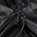 Fashion Solid Color Stand Collar V-neck Long Sleeve Side Ruched Artificial Leather PU Dress