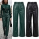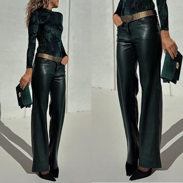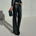Fashion Solid Color Straight-cut Artificial Leather PU Pants