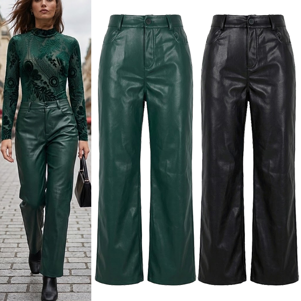 This pants features clean solid color styling with structured straight-cut silhouette and contemporary artificial leather construction for modern urban sophistication. Pair with fitted tops and ankle boots for contemporary urban appeal.