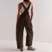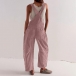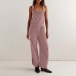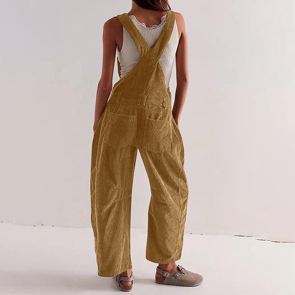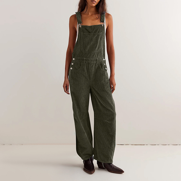 Fashion Solid Color Straight-cut Corduroy Suspender Jumpsuit
