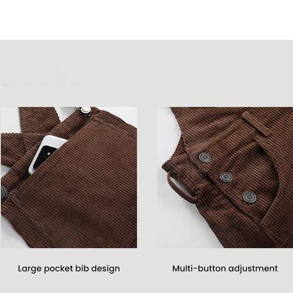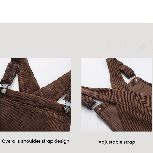 This charming jumpsuit features classic suspender styling with comfortable straight-cut silhouette and textured corduroy construction for vintage contemporary sophistication. Multi-colors available.