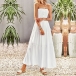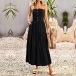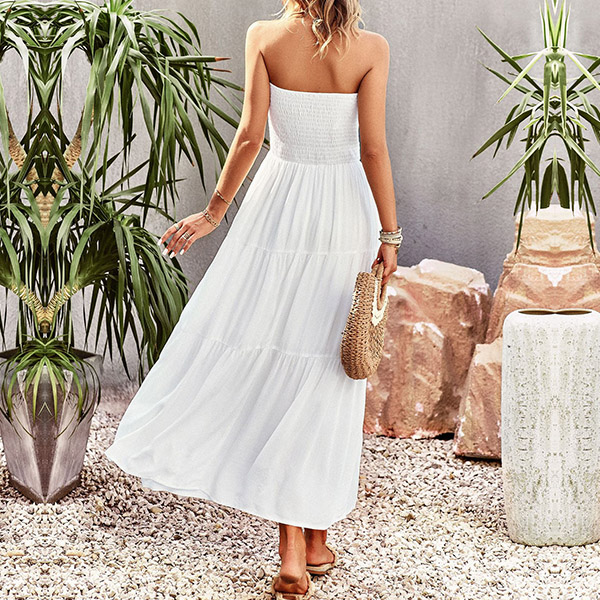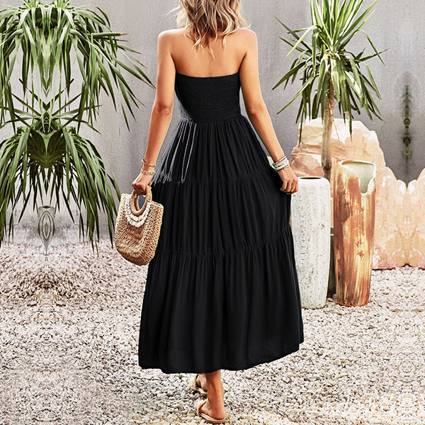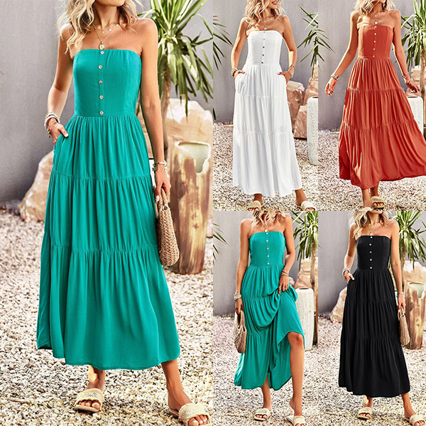 Fashion Solid Color Strapless Buttoned Tiered Midi Dress