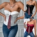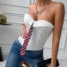 Fashion Solid Color Strapless Shirt with Tie
