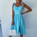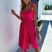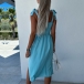 Fashion Solid Color Sweetheart Neckline Self-tie Shoulder Strap Slit Mini Dress