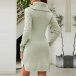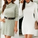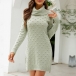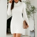 Fashion Solid Color Swiss-dot Turtleneck Long Sleeve Knitted Sweater Dress