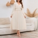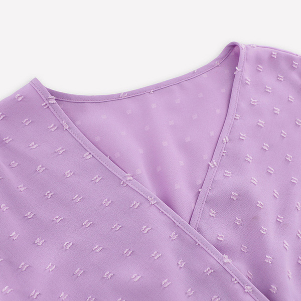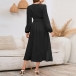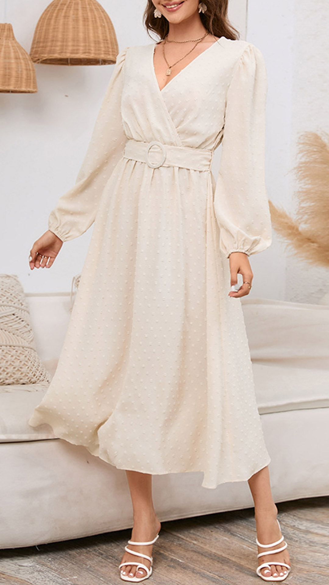 How about this dress? The Swiss-dot fabric adds a touch of texture and sophistication to the dress, while the V-neckline enhances your neckline and adds a hint of allure. The long sleeves provide coverage and warmth, making it suitable for both day and evening wear. Hope you like it.